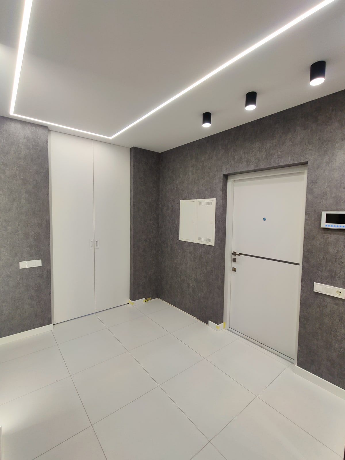 Наступним кроком ремонту квартири або будинку проводиться формування стін та перегородок, їх оштукатурювання та стяжка підлоги. Також проводиться порізка штроб, монтаж чорнової електрики та сантехніки, після чого монтуються стелі та інші конструкції з гіпсокартону.